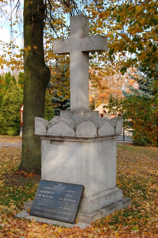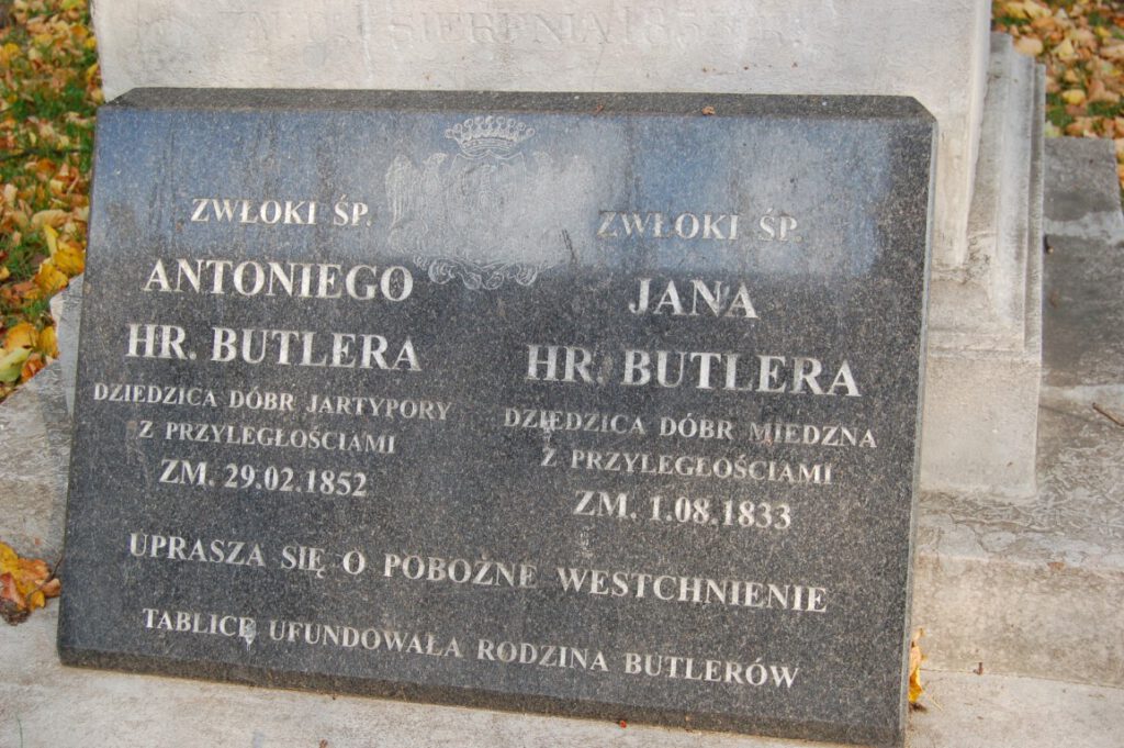Trudno oceniać i analizować cmentarz przykościelny z tego okresu (zapewne jest to ciekawy temat na inny artykuł – słyszałem, iż na tym terenie, jak i w podziemiach kościoła były prowadzone prace archeologiczne – ale jakie były ich efekty?) faktem jest, iż z tego miejsca grzebalnego szczątki doczesne naszych przodków zostały przeniesione w nowe miejsce. Wyjątkiem jest grobowiec rodzinny Butlerów – tablica głosi, iż spoczywają tam Antoni hr. Butler oraz Jan hr. Butler