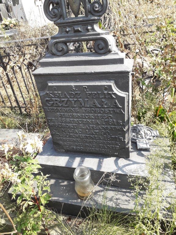 W metrykach kościelnych (baza cyfrowa) parafii Miedzna zachował się zapis o śmierci i pochówku Feliksa Grzymały (syna Marcina i Marianny) zm. 30.09.1871 w parafii Miedzna (wieś Zieleźniki) – myślę, iż jest to nasz ks. Felix (tylko pomyłka w miesiącu śmierci), choć brak jest metryki urodzenia.
